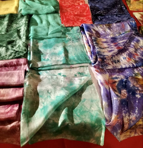 Wir treffen uns nach Absprache, um uns über Gestaltungsmöglichkeiten, die mit diesem edlen Stoff, der Seide, zu tun haben, auszutauschen. Dabei lernen wir alte und